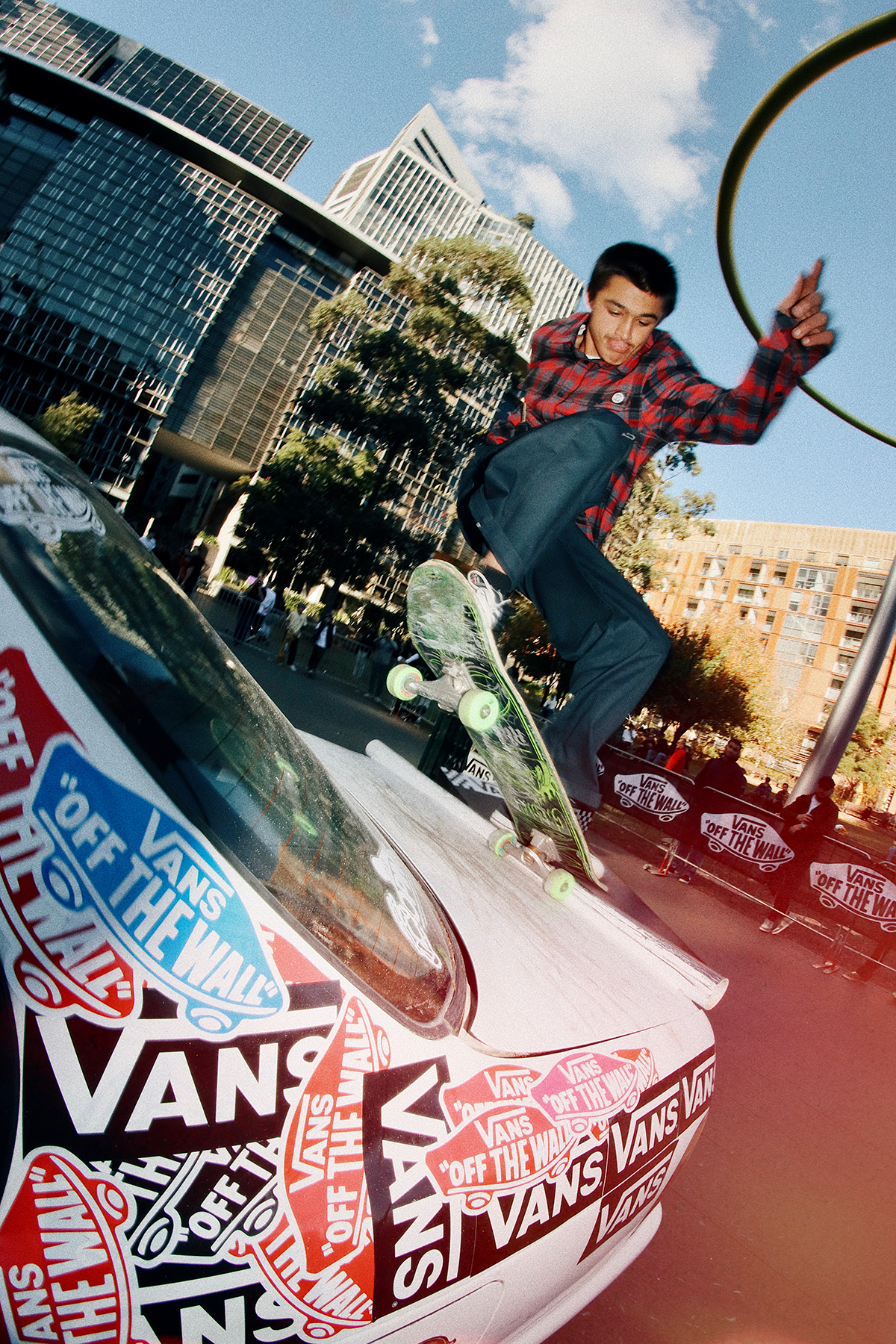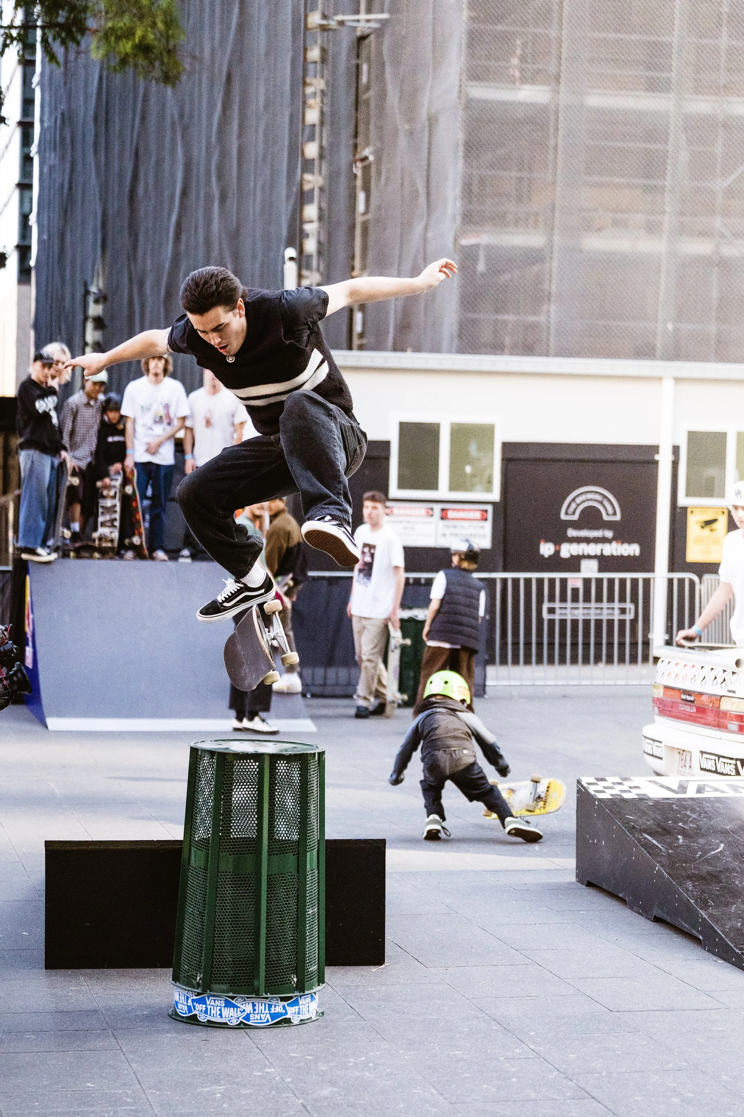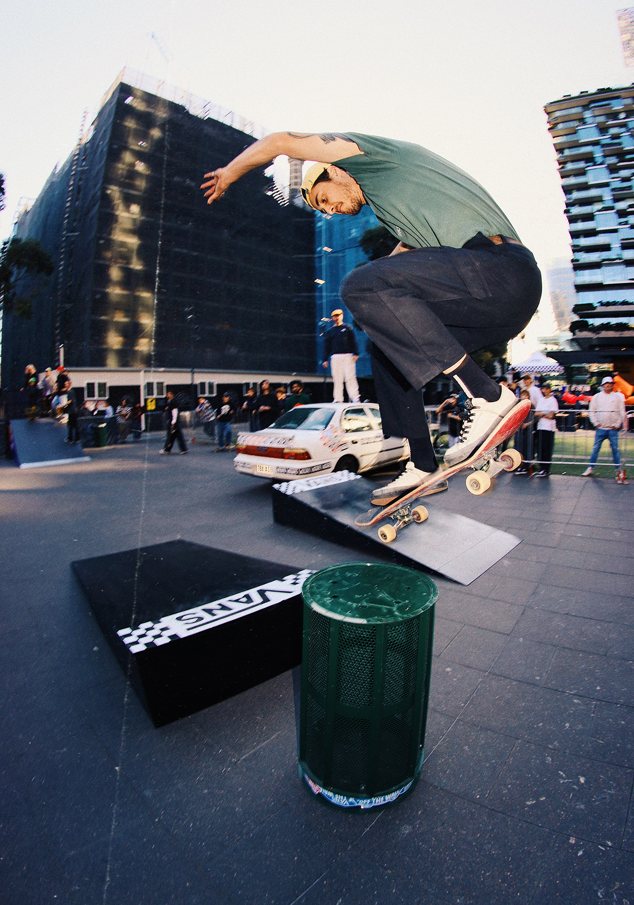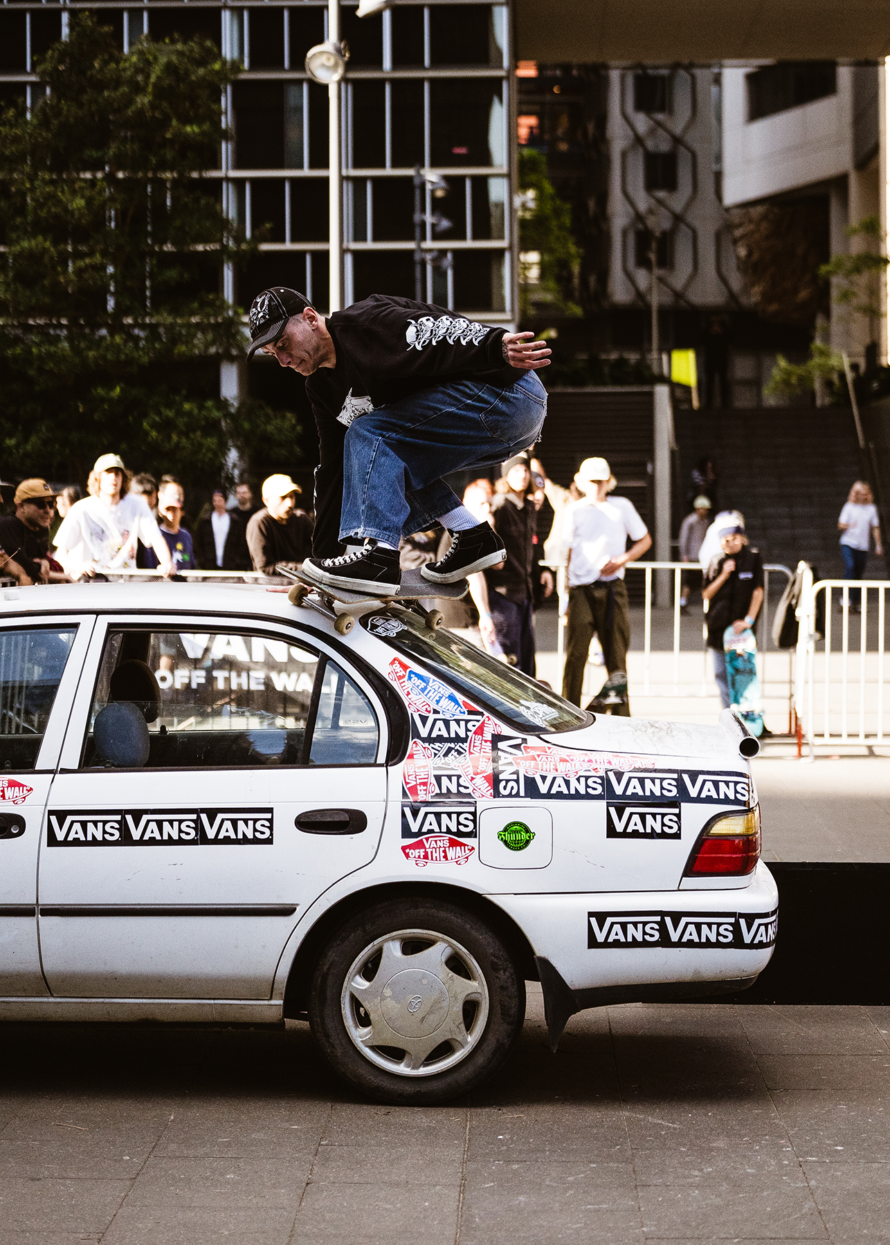 I used some of the money to buy a 90’s Toyota Corolla and modified to be skateable for the main obstacle AND to give away as the grand prize. Our mates at Kingswood Creative did all the car mods and built us some ramps to skate it. Being the skate industry guy that I am, I have a bunch of friends with brands and distributions so I was able to put together some serious prize packs to give away. Big thanks to the brands that supported: Vans, Pass~Port, X-Large, Sunday Hardware and Ace Trucks. It was such a fun day, skating a car is not something you get to do everyday so all the kids were absolutely frothing to get into it.